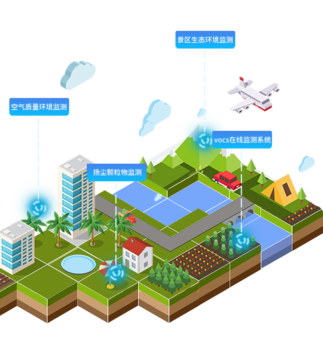 氮氧化物、二氧化碳、一氧化碳、負氧離子、氧含量等等。天合環境配套